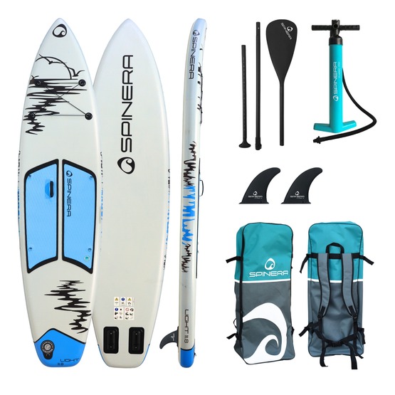 Spinera Light ULT 11’8 to wydłużona, a przy tym bardzo lekka deska SUP typu travel – idealna do dłuższych spływów i miejskich eskapad. Dzięki D-ringom możesz łatwo zamocować siedzisko kajakowe i korzystać z deski również w pozycji siedzącej. W komplecie: deska, wiosło, 2 stateczniki, pompka i plecak. Wymiary deski: 360×84,5×15 cm. Max. ciśnienie: 15 psi. Max. obciążenie: 180 kg