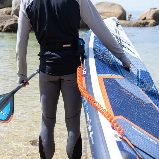 Charakterystyczny zaostrzony kształt dzioba poprawia „przecinanie” wody, co przekłada się na efektywność wiosłowania. Railsaver, czyli prosta krawędź na dnie rufy ułatwia odprowadzanie wody spod deski, dzięki czemu SUP świetnie utrzymuje się w ślizgu. Wbudowany kick pad ułatwia manewrowanie i wykonywanie dynamicznych zwrotów o 180 stopni (tzw. pivotów). Fin w systemie Slide in został przesunięty bliżej środka deski.