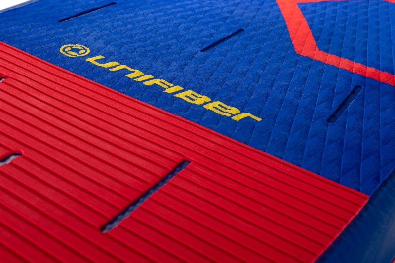 Pokład pokryty antypoślizgową pianką EVA z tłoczonym wzorem, który ułatwia odprowadzanie wody, zapewnia doskonałą przyczepność i chroni przed ślizganiem się. Środkowy pad z fakturą typu diamond, a tylny ryflowany