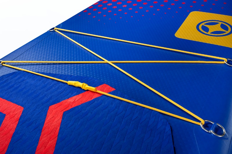 Elastyczna linka bagażnikowa w przedniej części deski pozwoli bezproblemowo przewieźć drobny ekwipunek. Opcjonalnie zamocujesz tam wiosło lub kamizelkę, by nie wpadło do wody w chwilach wolnych od wiosłowania.