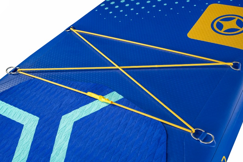 Dwie strefy bagażowe (elastyczne linki na dziobie i rufie) oraz wyporność na poziomie 347 litrów sprawiają, że to idealny kompan na dłuższe wyprawy, gdy potrzebujesz zabrać większą ilość bagaży. Pianka EVA na pokładzie daje poczucie bezpieczeństwa, chroniąc przed poślizgiem i upadkiem. Oprócz właściwości antypoślizgowych, footpad jest przyjemny w dotyku, zapobiegając ewentualnym otarciom. Możliwość napompowania do aż 20 psi, sprawia, że deska staje się niesamowicie sztywna – podnosząc nie tylko parametry wytrzymałościowe, ale i osiągi.