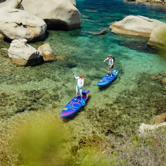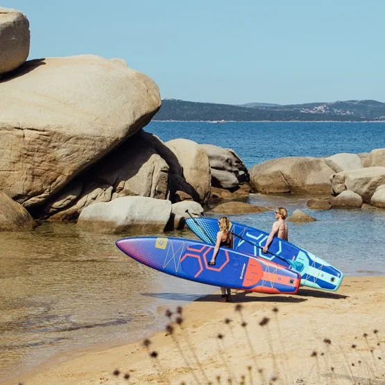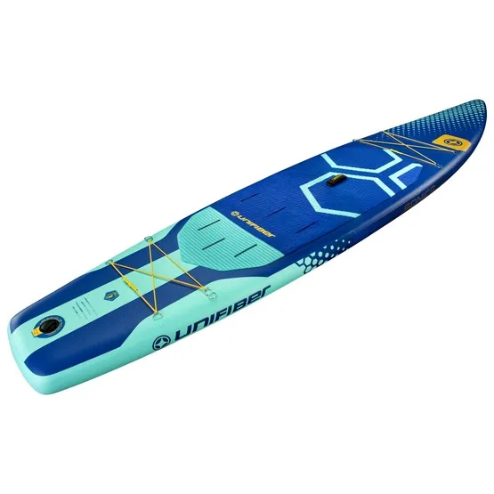 Unifiber Sonic Touring 12'6 FCD to długa deska SUP dla średniozaawansowanych paddlerów, pragnących pływać szybciej niż na deskach allround. Idealna na dłuższe wyprawy po spokojnych wodach śródlądowych, jak i zabawę na wodach morskich z niewielką falą. Rekomendowana dla osób o wadze do 110 kg. Zaawansowana konstrukcja Fusion Composite Dropstitch pompowana do 20 psi. W zestawie regulowane wiosło! Wymiary: 380x80x15 cm
