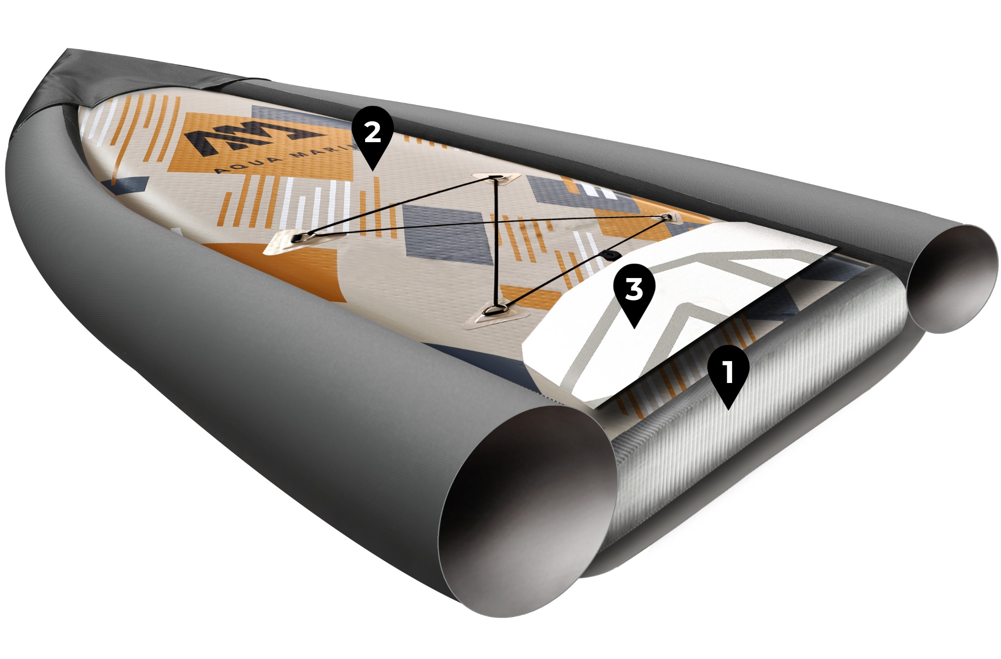 Technologia Drop-Stitch (super mocne nici konstrukcyjne) oraz dodatkowe podłużne wzmocnienia z tworzywa sztucznego gwarantują świetną wytrzymałość