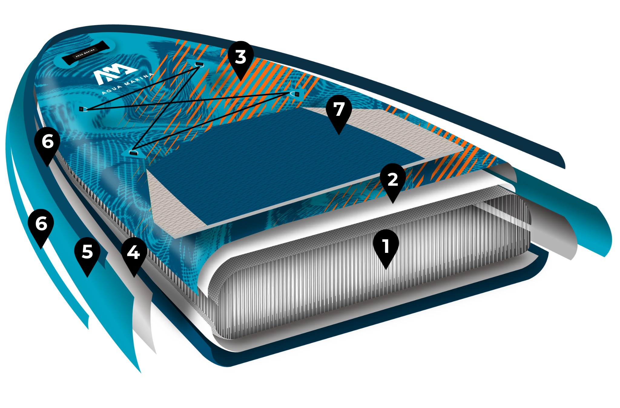 2-warstwowa konstrukcja, nici Drop Stitch oraz dodatkowe wzmocnienia PCV na burtach zapewniają świetną wytrzymałość deski na wiele sezonów