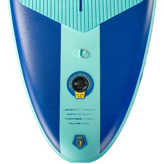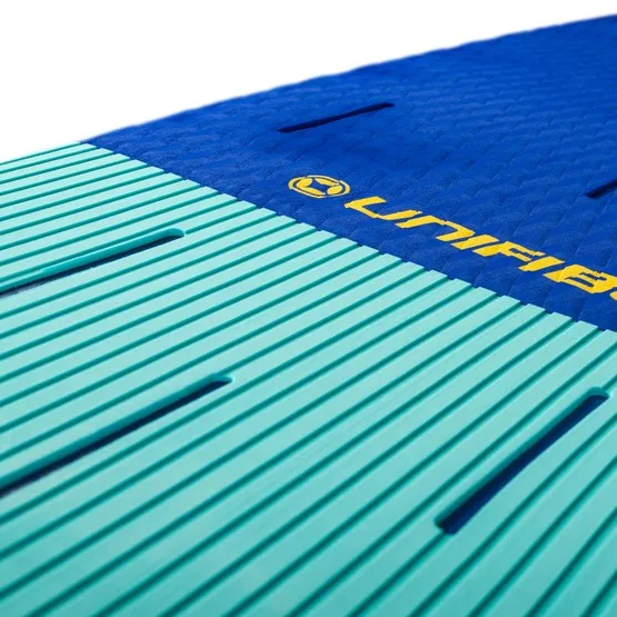 Pokład pokryty antypoślizgową pianką EVA z tłoczonym wzorem, który ułatwia odprowadzanie wody, zapewnia doskonałą przyczepność i chroni przed ślizganiem się. Środkowy pad z fakturą typu diamond, a tylny ryflowany