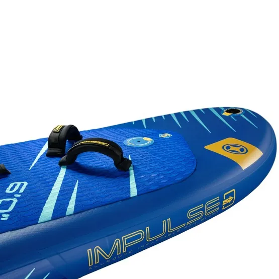 Deska jest skonstruowana wokół carbonowej płyty umieszczonej w obszarze pod footstrapami. Ta technologia, w połączeniu z pompowaną konstrukcją Fusion Composite Dropstitch, pozwoliła desce Impulse uzyskać poziom sztywności zarezerwowany do tej pory głównie dla desek kompozytowych. Rocker na nosie ma dodatkowe odbicie, które sprawia, że przyziemienie jest bardziej miękkie i bezpieczniejsze. Pokład jest pokryty diamentowymi i kierunkowymi rowkami, które zapewniają kierowcy maksymalną przyczepność. Deska Impulse jest dostarczana z paskami Unifiber Comfort Footstraps, które można przykręcić do wbudowanych wkładek.