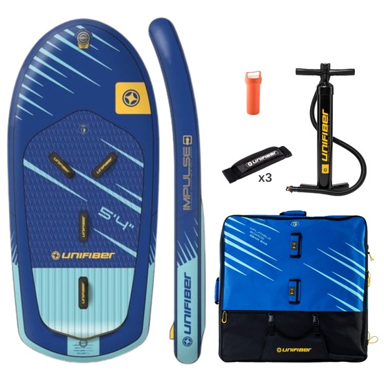 Unifiber Impulse Allround Wing Foil FCD 5'4 to pompowana deska wing foil w jednym rozmiarze dedykowana dla początkujących i średniozaawansowanych. Duża szerokość, rewelacyjna technologia konstrukcyjna Fusion Composite Dropstich zapewnia świetną wytrzymałość i możliwość pompowania nawet do 20 psi. Dodatkowej sztywności dostarcza płyta foil track z Carbonu, do której mocuje się foila. Wymiary: 163x72x12 cm. Objętość: 110 l. W zestawie m.in. leash