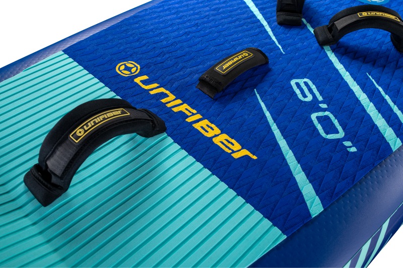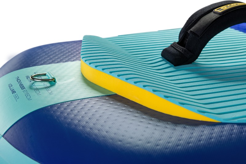Doskonała przyczepność dzięki piance EVA z fakturą typu diamond w centralnej części pokładu oraz karbowaną na rufie. Specjalnie wyprofilowane, wypukłe footpady jako oparcie na stopy dla lepszej kontroli w ślizgu