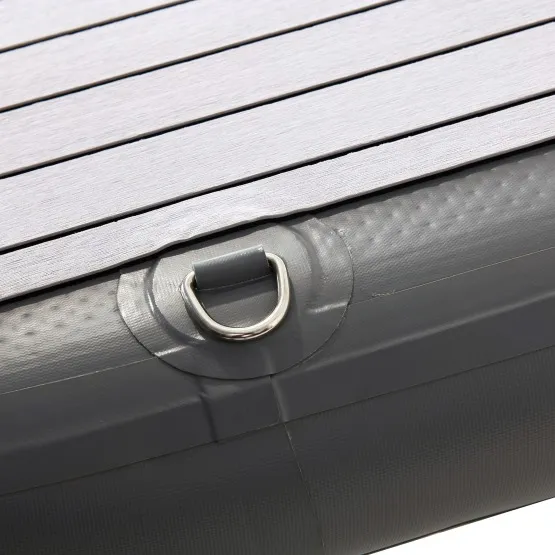 Platforma została wyprodukowana w technologii Drop Stitch, dzięki temu jest bardzo sztywna po napompowaniu i wyjątkowo trwała. Dodatkowo wzmocnione zostały narożniki, które zabezpieczają tratwę przed uszkodzeniem. Komfort zapewni Ci pokład pokryty w całości pianką EVA.