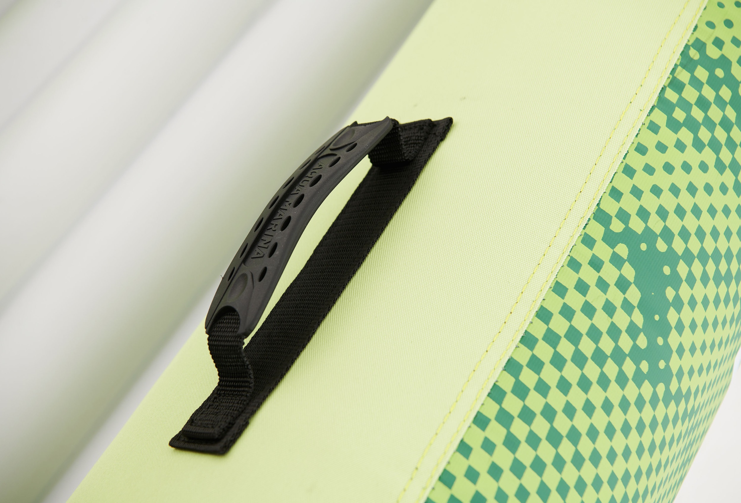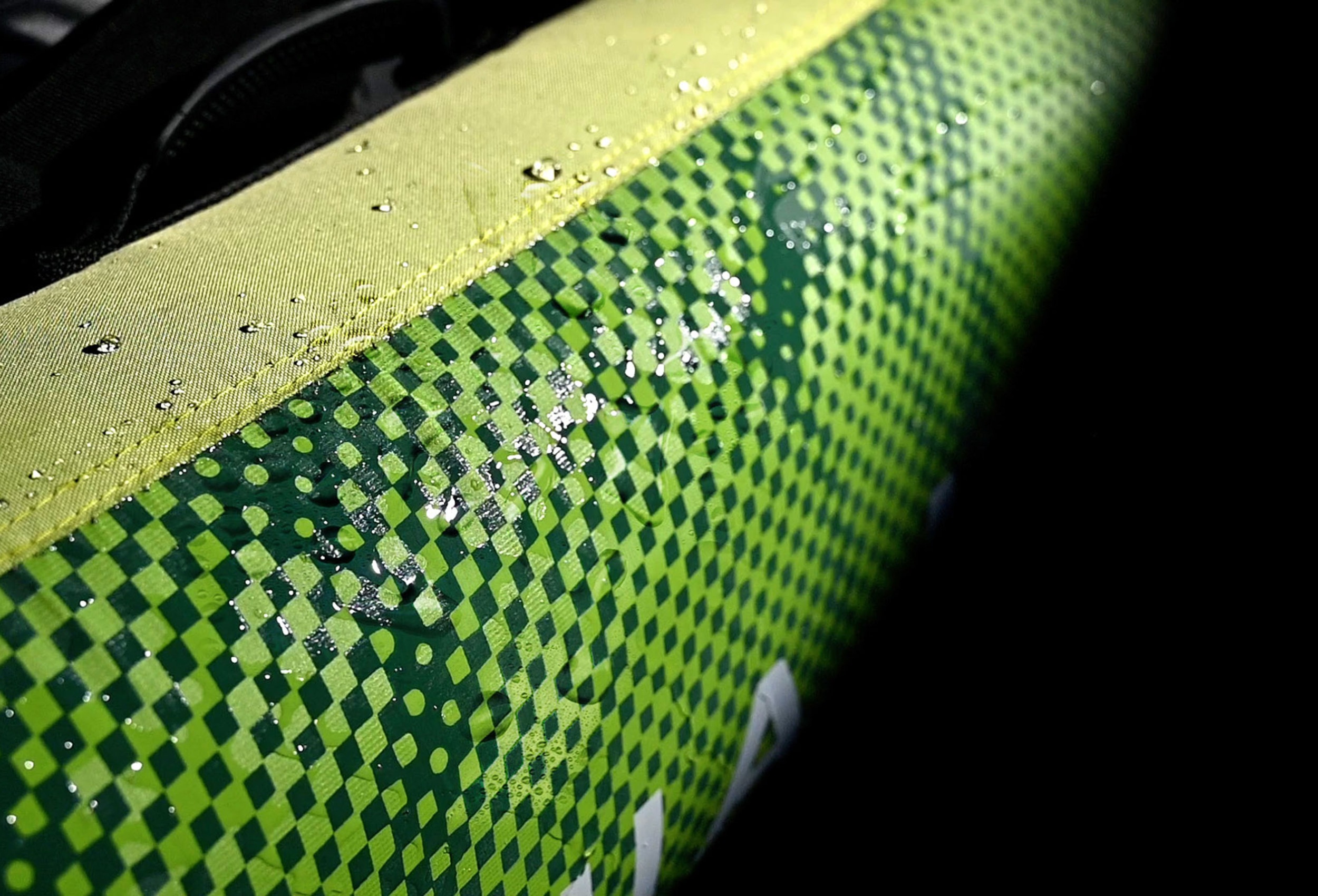 Aqua Marina wykorzystała Aquashell™ Technology, która sprawia, że materiał jest hydrofobowy i posiada specjalną powłokę chroniącą przed promieniowaniem UV. Dodatkowo technologia Eco-print™, czyli technika druku cyfrowego gwarantująca trwałość grafiki i przyjazność samego procesu dla środowiska.