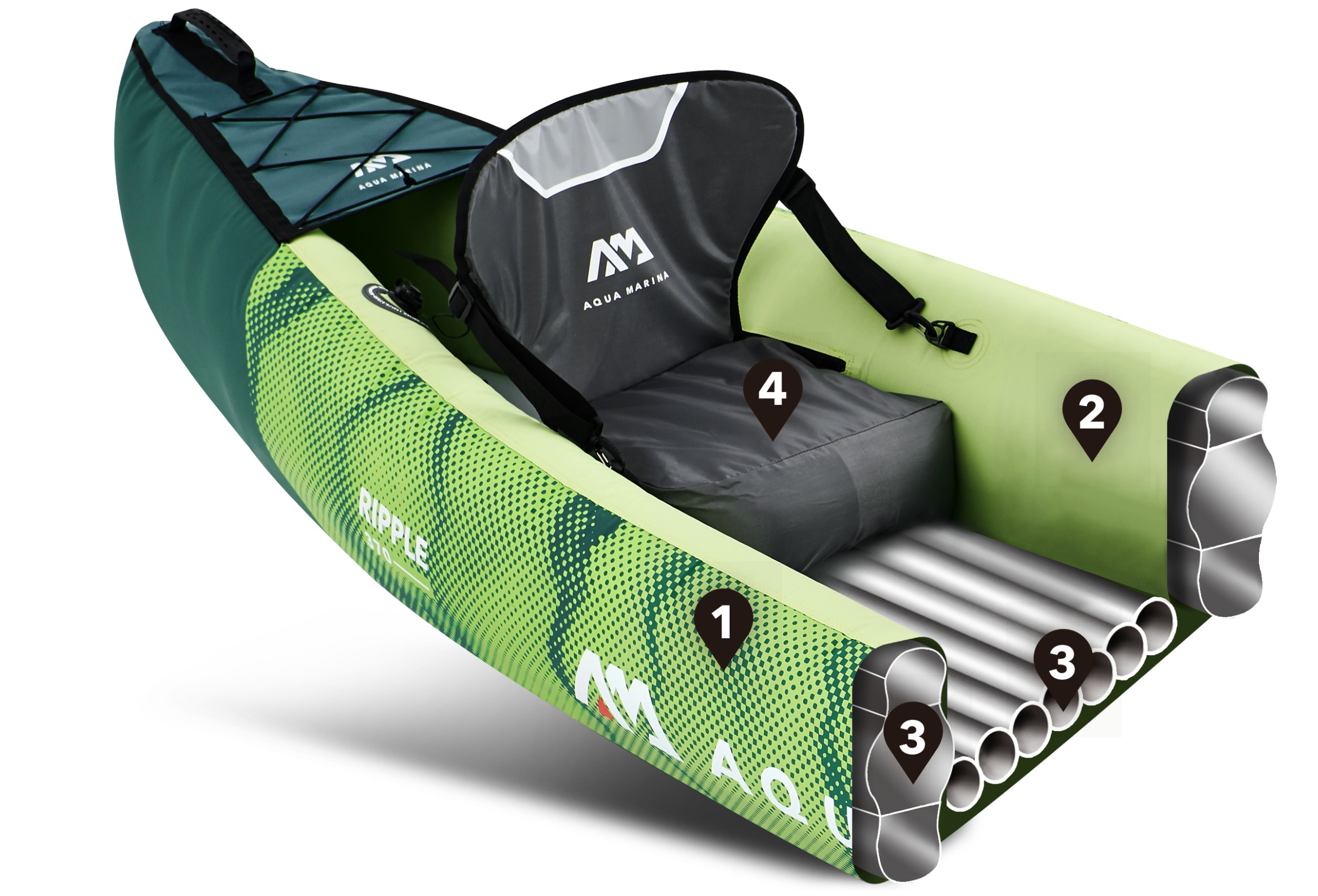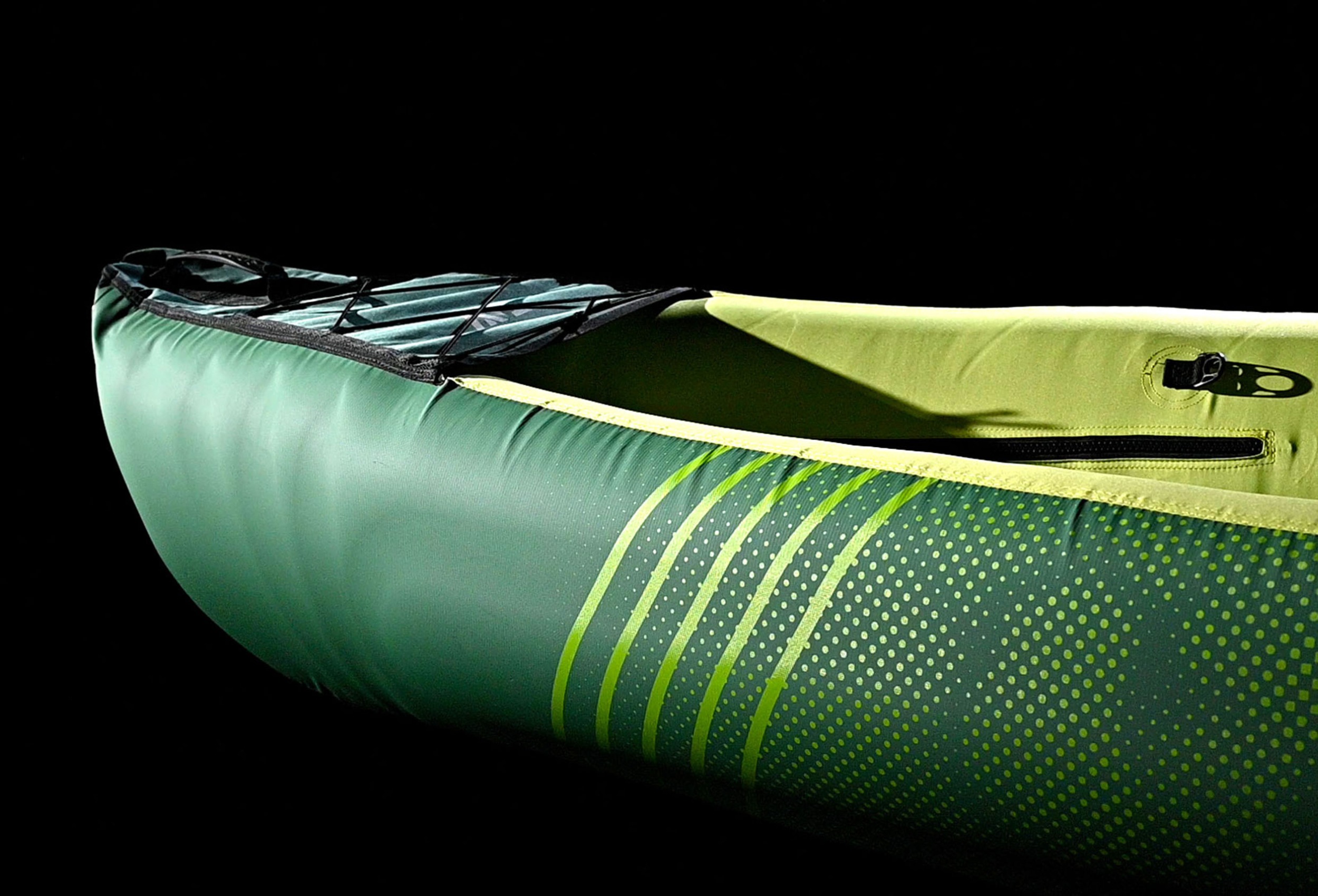 Canoe został wykonany z wielowarstwowego wytrzymałego materiału PVC. Składa się z 3 nadmuchiwanych komór powietrznych wykonanych w technologii I-beam, która daje mu świetną stabilność, oraz więcej przestrzeni do przechowywania bagażu. Dwie boczne komory dają poczucie bezpieczeństwa, a szeroka podłoga zapewnia komfortową przestrzeń oraz dużą stabilność. Jego wnętrze zostało pokryte bardzo lekkim, trwałym materiałem, przyjemnym w dotyku dla skóry.