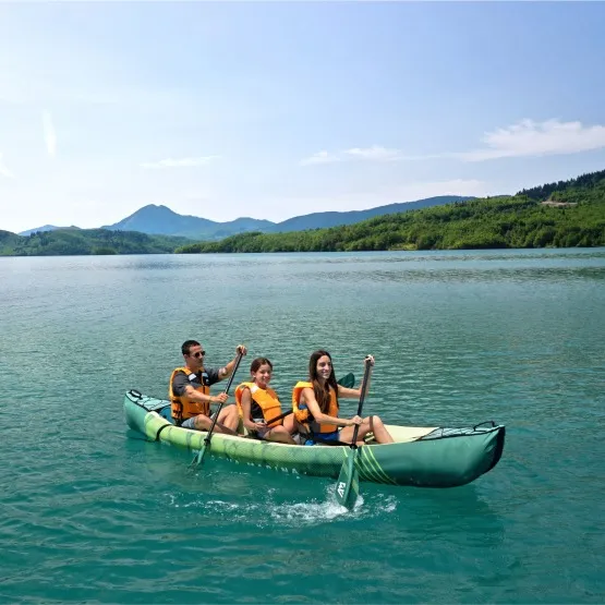 Canoe pneumatyczny, trójkomorowy Ripple 370 to świetna propozycja dla całej rodziny lub grupy znajomych. Pomieści on 3 osoby oraz całkiem spory bagaż. Jeśli planujesz dłuższą wyprawę i chcesz zabrać ze sobą sprzęt biwakowy to Ripple będzie idealnym wyborem. Jego maksymalna wyporność to aż 230 kg.
