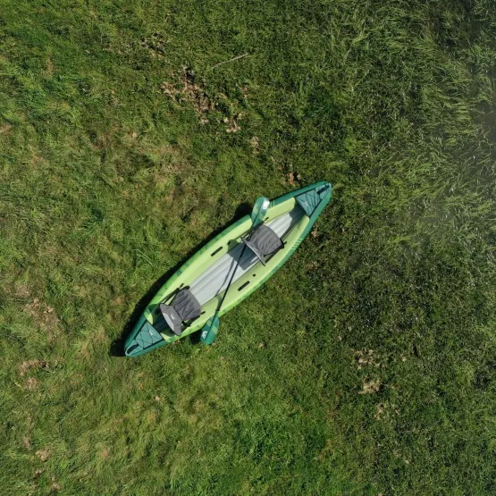 Canoe został wykonany z wielowarstwowego wytrzymałego materiału PVC. Składa się z 3 nadmuchiwanych komór powietrznych wykonanych w technologii I-beam, która daje mu świetną stabilność, oraz więcej przestrzeni do przechowywania bagażu. Dwie boczne komory dają poczucie bezpieczeństwa, a szeroka podłoga zapewnia komfortową przestrzeń oraz dużą stabilność. Jego wnętrze zostało pokryte bardzo lekkim, trwałym materiałem, przyjemnym w dotyku dla skóry.