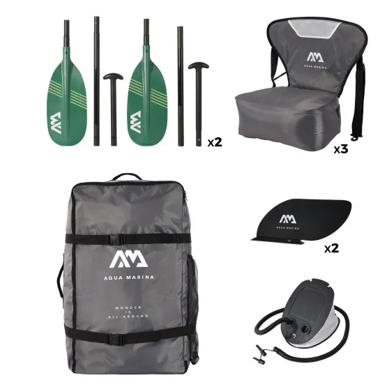 W zestawie znajdziesz 2 aluminiowe, 3-częściowe wiosła Ripple-tech, które można szybko przekształcić z wiosła kajakowego w 2 wiosła typu pagaj. Wygodny plecak pomieści wszystkie elementy zestawu i pozwoli Ci wygodnie przetransportować canoe nad wodę.