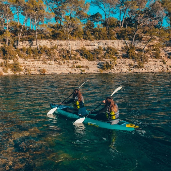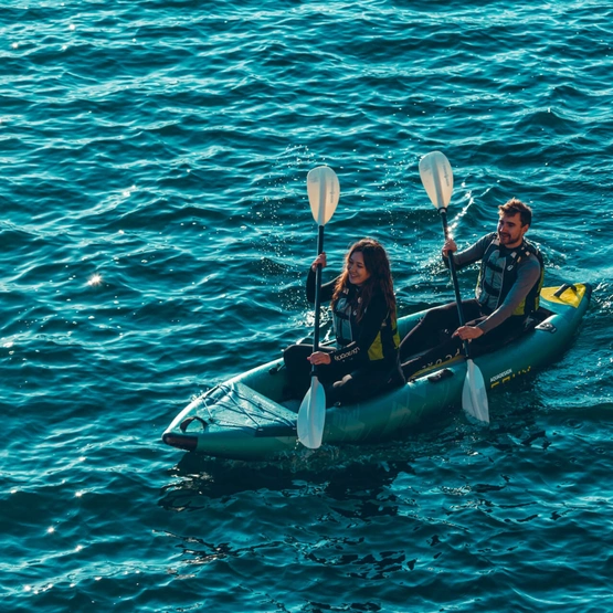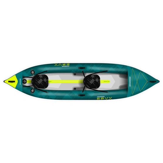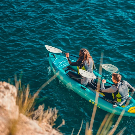 Aquadesign EPYX 380 to dwuosobowy kajak pompowany do spokojnych wypraw po morzu, jeziorze i rzekach o trudności do klasy II. Sztywna podłoga drop-stitch i tuby z PVC 1100 DTEX zapewniają dużą stabilność i komfort podczas dłuższych wycieczek. Wymiary kajaka: 380×96×42 cm. Max. ciśnienie: 10 PSI (podłoga) / 3,5 PSI (tuby).