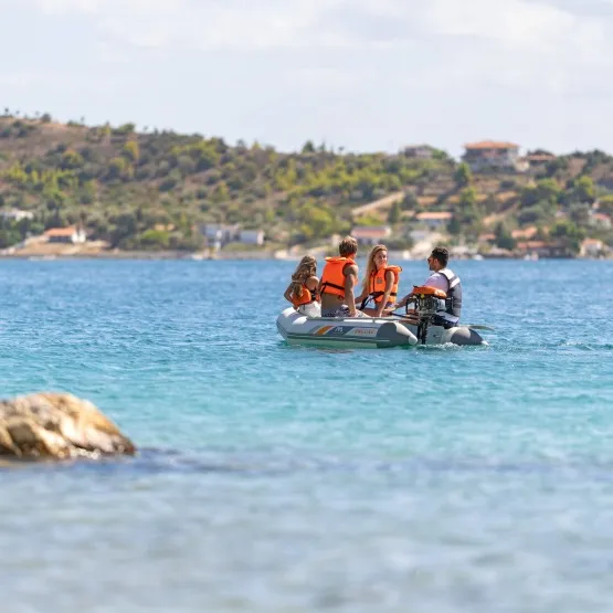 AQUA MARINA Boat A-DeLuxe 8'2 to kompaktowy ponton idealny na jeziora, rzeki i spokojne wody przybrzeżne. Dzięki podłodze typu slat deck jest lekki, łatwy w montażu i transporcie, a jednocześnie stabilny i wygodny w użytkowaniu. Przeznaczony dla 2-3 osób, sprawdzi się zarówno do rekreacyjnego pływania, jak i jako łódź pomocnicza do większych jednostek. Jego maksymalna ładowność to 240 kg.