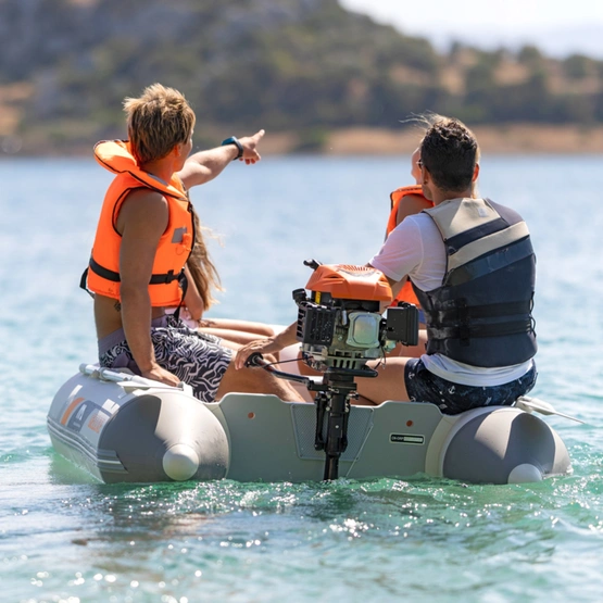 Jeżeli chcesz poczuć wiatr we włosach to, zamocuj silnik o mocy nie większej niż 15 koni mechanicznych. Waga pontonu to jedyne 43 kg, możesz zapakować go w wygodną torbę i zmieścić do większości bagażników samochodowych.