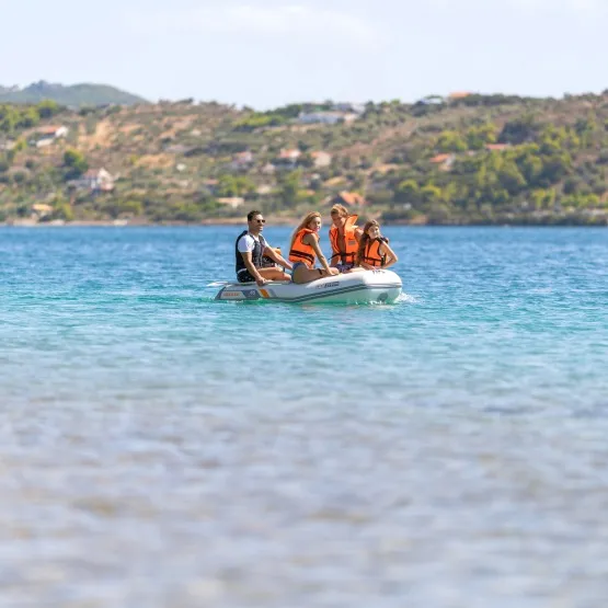 Jeżeli chcesz poczuć wiatr we włosach to, zamocuj silnik o mocy nie większej niż 20 koni mechanicznych. Waga pontonu to jedyne 57 kg, możesz zapakować go w wygodną torbę i zmieścić do większości bagażników samochodowych.