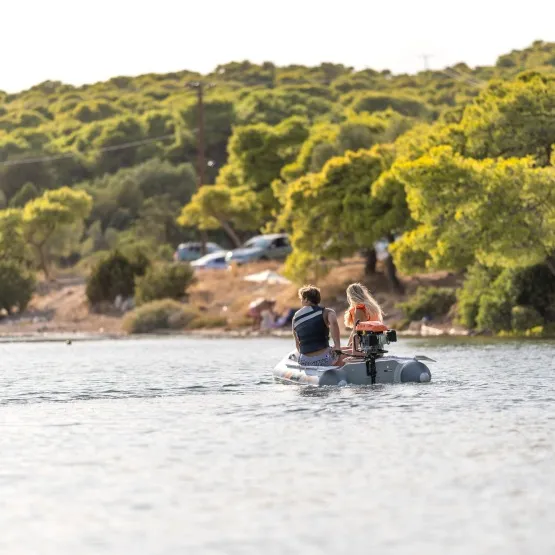 Jeżeli chcesz poczuć wiatr we włosach, to zamocuj silnik o mocy nie większej niż 20 koni mechanicznych. Waga pontonu to jedyne 34 kg, możesz zapakować go w wygodną torbę i zmieścić do większości bagażników samochodowych.