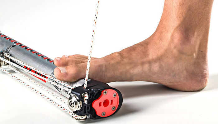 BŁYSKAWICZNY DEMONTAŻ! Dzięki zmodyfikowanej pozycji knagi możesz łatwo wyczepić linkę poprzez postawienie stopy na przedłużce i krótkie wyszarpnięcie linki w górę. Cyk i gotowe!