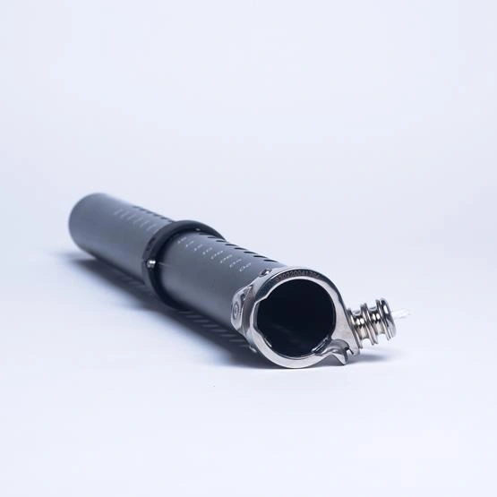 Konstrukcja ze stali nierdzewnej przenosi obciążenie bezpośrednio z bloczków na rurkę przedłużki. Zastąpienie plastikowych elementów stalą nierdzewną zwiększa trwałość i zmniejsza tarcie podczas naprężania.