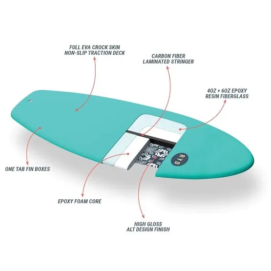 Układ finów: 5 finSystem finów: Futures/One tabPlastikowe finy dołączone do deski (thruster)Konstrukcja: rdzeń EPS, stringer z włókna węglowego, śliskie dno