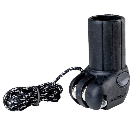 Klasyczna windsurfingowa stopa masztu „0cm” do żagli z vario topem. 2 rolki zmniejszają siłę potrzebną do naciągnięcia żagla po maszcie, a knaga pewnie zabezpiecza linkę w pożądanym ustawieniu. Stopa jest wyposażona w linkę.