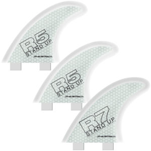 Wszystkie rozmiary są wyposażone w zestaw stateczników Thruster i osłony skrzynek FCS. Masz możliwość pływania w różnych konfiguracjach stateczników: z pojedynczym finem, układem twin, thruster (dołączony zestaw), quad lub nawet z pięcioma finami. Skrzynka centralna pozwala wybrać jedną z dwóch pozycji statecznika (z tyłu lub nieco do przodu) w celu indywidualnego dostrojenia.