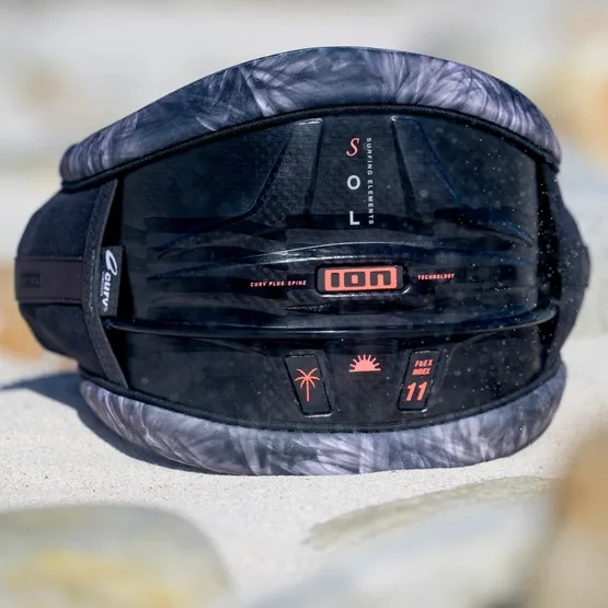 Technologia ION 3D Fit zapewnia idealne dopasowanie do rozmiaru i kształtu ciała każdej osoby. Kształt pasa trapezu, należy dopasować do wzrostu i obwodu talii, dlatego Sol Curv jest dostępny w rozmiarach regularnych i dla wysokich osób. Wymienny Ergo_Pad po wewnętrznej stronie zapewnia dwa stopnie podparcia odcinka lędźwiowego (każdy trapez ma dwie opcje – średnie i wysokie podparcie – wybierz to, które najbardziej Ci odpowiada). Sol Curv jest średnio sztywny (indeks elastyczności 14) i zapewnia dobrą równowagę między bezpośrednim czuciem zestawu, elastycznością i wsparciem. Ultralekka konstrukcja Curv rozkłada siły równomiernie na całą powierzchnię trapezu. Jednocześnie jest wystarczająco elastyczny, aby zapewnić wystarczającą swobodę ruchów podczas tricków i manewrów. Niewchłaniająca wody pianka Hyper_Foam gwarantuje ergonomiczne dopasowanie i lekkość, podczas gdy Neoprene_Belt zapewnia pewne trzymanie tapezu i elastyczność z przodu. Elegancki bar z hakiem ION Spectre Bar (w wersji z hakiem do kitesurfingu) uzupełnia doskonałą konstrukcję Sol Curv. Jego Curv_Flaps zapewniają równy i optymalny rozkład siły w całym trapezie. Trapez jest wyposażony w zintegrowane narzędzie Knite_Knife Multitool 2.0. Sol Curv to wybór team riderek. Mają go w swoim quiverze między innymi Mikaili Sol i Rita Arnaus.