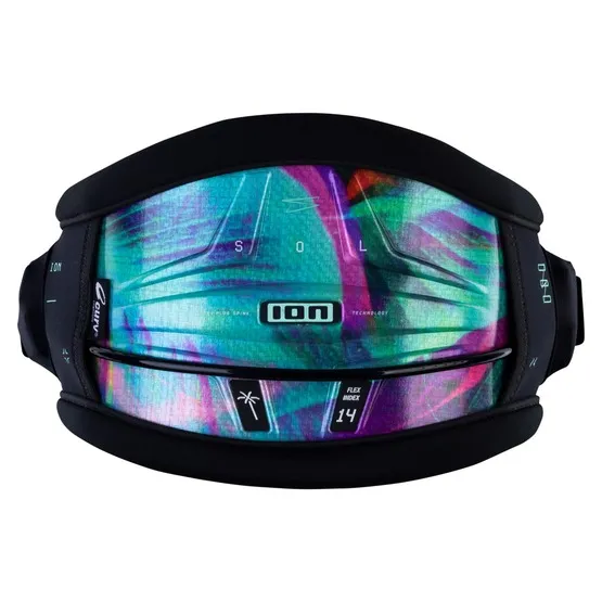 Technologia ION 3D Fit zapewnia idealne dopasowanie do rozmiaru i kształtu ciała każdej osoby. Kształt pasa trapezu, należy dopasować do wzrostu i obwodu talii, dlatego Sol Curv jest dostępny w rozmiarach regularnych i dla wysokich osób. Wymienny Ergo_Pad po wewnętrznej stronie zapewnia dwa stopnie podparcia odcinka lędźwiowego (każdy trapez ma dwie opcje – średnie i wysokie podparcie – wybierz to, które najbardziej Ci odpowiada). Sol Curv jest średnio sztywny (indeks elastyczności 14) i zapewnia dobrą równowagę między bezpośrednim czuciem zestawu, elastycznością i wsparciem. Ultralekka konstrukcja Curv rozkłada siły równomiernie na całą powierzchnię trapezu. Jednocześnie jest wystarczająco elastyczny, aby zapewnić wystarczającą swobodę ruchów podczas tricków i manewrów. Niewchłaniająca wody pianka Hyper_Foam gwarantuje ergonomiczne dopasowanie i lekkość, podczas gdy Neoprene_Belt zapewnia pewne trzymanie tapezu i elastyczność z przodu. Elegancki bar z hakiem ION Spectre Bar (w wersji z hakiem do kitesurfingu) uzupełnia doskonałą konstrukcję Sol Curv. Jego Curv_Flaps zapewniają równy i optymalny rozkład siły w całym trapezie. Trapez jest wyposażony w zintegrowane narzędzie Knite_Knife Multitool 2.0. Sol Curv to wybór team riderek. Mają go w swoim quiverze między innymi Mikaili Sol i Rita Arnaus.