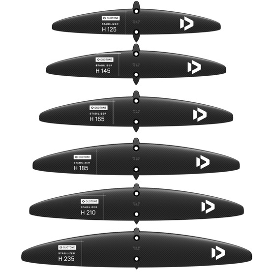 Stabilizatory H są dostępne w sześciu rozmiarach: 125/145/165/185/210/235. Każdy z nich został nieco zmodyfikowany, aby idealnie współpracować z nowymi przednimi skrzydłami.