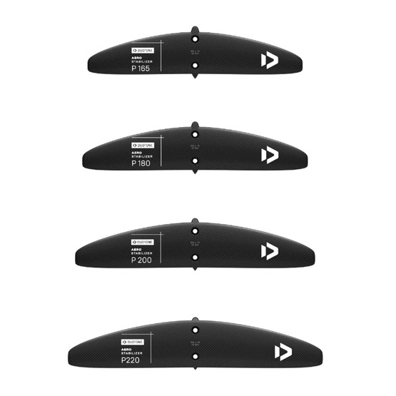 Stabilizatory P są dostępne w czterech rozmiarach, 165/180/200/220. Każdy z nich został nieco zmodyfikowany, aby idealnie współpracować z nowymi przednimi skrzydłami. Dostosuj kąt natarcia stabilizatora o +/- 0,3 stopnia, aby dopasować go do swojego stylu jazdy lub warunków panujących w danym dniu.
