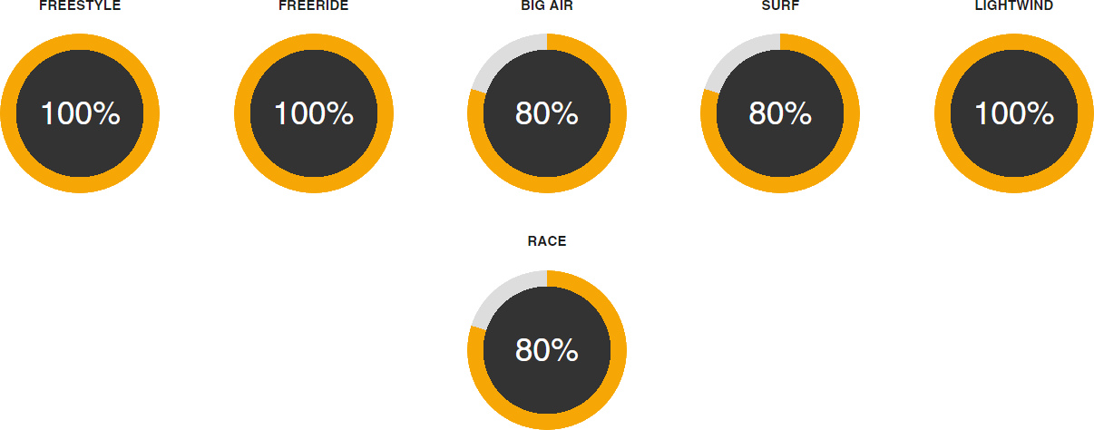 Super wszechstronny wing, który sprawdzi się w każdym stylu pływania od freeride’u w super słabym wietrze, przez freestyle po ekstremalny wave. Bardzo szeroki zakres rozmiarów na każde warunki i dla każdego ridera. Vision jest wyposażony w sztywne rączki.