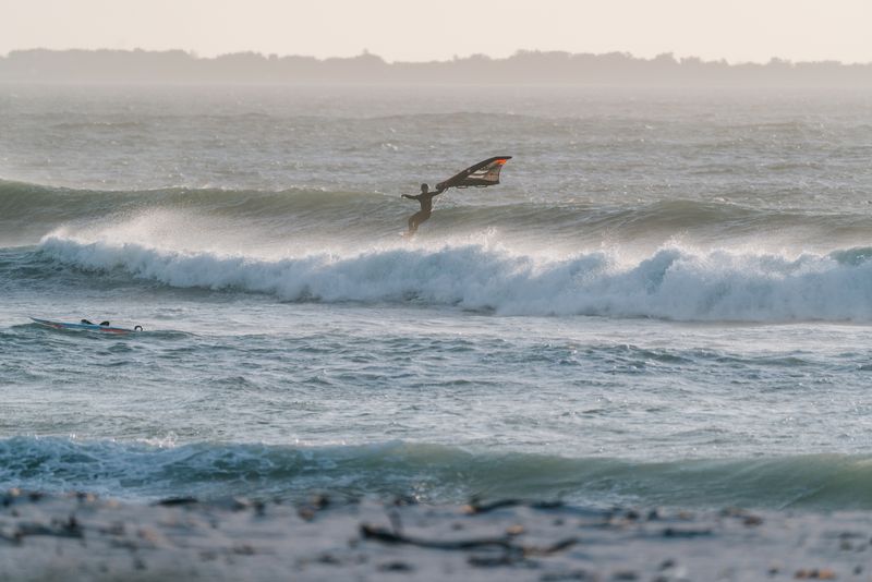 „SCORE ma ogromny zakres wiatrowy i radzi sobie wyjątkowo dobrze w trudnych warunkach. Zapewnia moc podczas najbardziej porywistych sesji, jakie ocean ma do zaoferowania. Skrzydło jest wyjątkowo dobrze wyważone podczas „flagowania” i jazdy na falach. Czuję, że SCORE ze sztywnymi uchwytami jest idealnym skrzydłem do wszystkiego.” ~ Joshua Pretorius