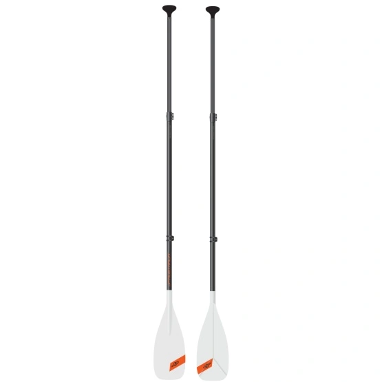 Wiosło wykonane z włókna szklanego ma naturalny flex, dzięki czemu nie nadwyrężamy pleców i barków. Podłużny kształt ”Y” usztywniający pióro zapewnia lepszą wydajność wiosłowania. Antypoślizgowe wykończenie trzonu daje bardzo dobrą przyczepność pod ręką. Wyposażone w przedłużkę regulacji z włókna szklanego/carbonu z rączką z ABS.