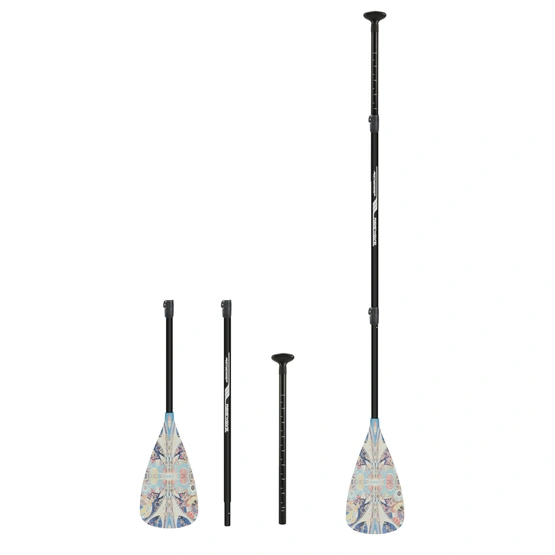 RideWave Conquerbrace to wyczynowe wiosło SUP stworzone z myślą o zawodnikach i zaawansowanych użytkownikach. Dzięki mieszance włókna szklanego i węgla, lekkiej trzyczęściowej konstrukcji, gwarantuje najwyższy poziom osiągów. Regulowana długość (165–210 cm) i waga 860 g czynią z niego króla rywalizacji. Wiosło wyróżnia się także unikalną i kolorową grafiką, która przyciąga wzrok na wodzie.