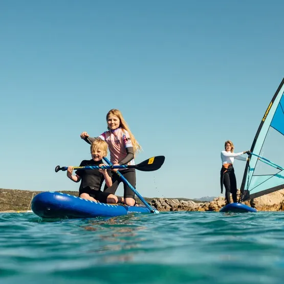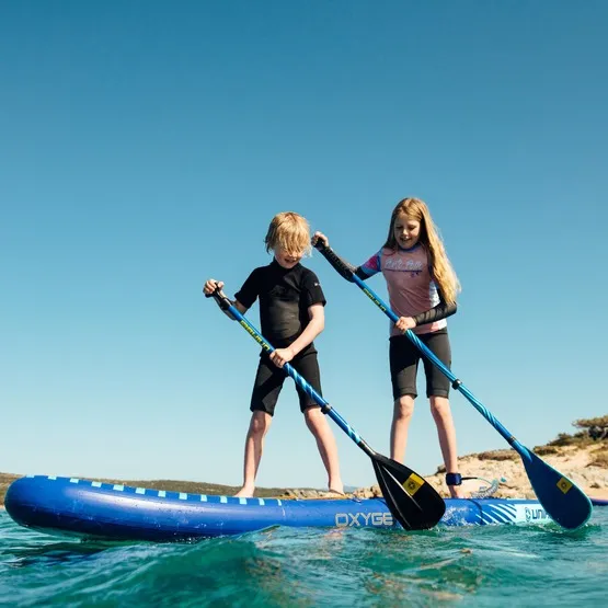 Aluminiowy drążek jest krótszy niż standardowe wiosła i posiada wygodny uchwyt w kształcie litery T wyprofilowany odpowiednio do dziecięcych dłoni. Dla jeszcze lepszego i pewnego chwytu powierzchnia całego trzonka została pokryta warstwą antypoślizgową, która dodatkowo chroni Twoją deskę przed przypadkowymi zarysowaniami i zwiększa wyporność wiosła.