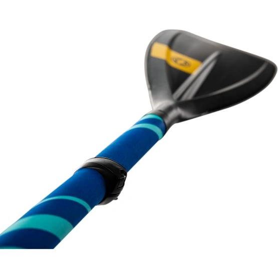 Uchwyt w kształcie litery „T” ułatwia pewny i poprawny chwyt. Pokrycie całego trzonka miękką antypoślizgową pianką EVA sprawia, że wiosło jest wygodne w trzymaniu, zwiększa jego wyporność i chroni deskę przed zarysowaniami