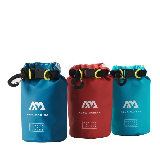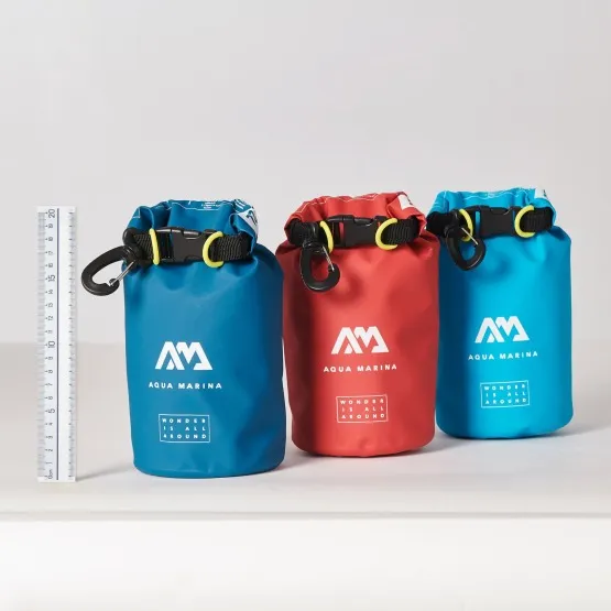 Wodoszczelny worek Aqua Marina Mini 2L zabezpieczy Twoje rzeczy podczas pływania na SUP-ie lub kajaku. To najmniejszy dry bag w ofercie, który pomieści drobne akcesoria typu: telefon, portfel, klucze czy kamera sportowa. Posiada karabińczyk do przyczepienia np. do szlufki w pasie lub plecaka. Wymiary: 12×28 cm