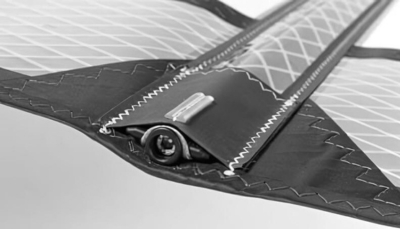 Jednoczęściowa kieszeń masztowa bez szwów na krawędzi natarcia >> 80 g oszczędności wagi i brak sztywnej linii na szwie i nakładających się panelach