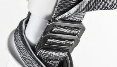 Zainspirowany wytrzymałymi uprzężami wspinaczkowymi i kaskami Formuły 1. Ekskluzywna, dwuczęściowa metalowa klamra podwójna-D na górze vario, która zastępuje tradycyjne rozwiązania. Ten projekt gwarantuje najlepsze właściwości regulacji i eliminuje wszelkie przesunięcia taśmy
