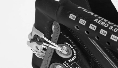 Poprawna długość bomu bez prób i błędów. Ponieważ bom jest przymocowany do masztu na różnych wysokościach w zależności od rozmiaru ciała, a to tworzy inny kąt do masztu, długość bomu będzie się różnić. Konkretne zalecenia dotyczące prawidłowej długości są drukowane bezpośrednio na kieszeni przedniej na poziomie bomu