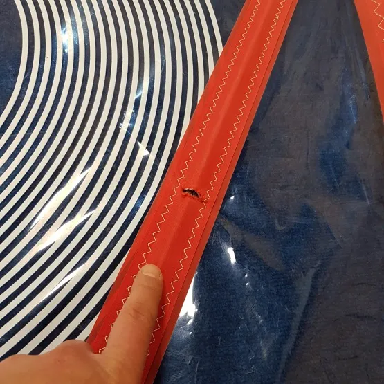 | Powierzchnia (m²) | Luff (cm) | Bom (cm) | Przedłużka (cm) | Maszt | Listwy | Kambery | Vario top | Waga (kg) |