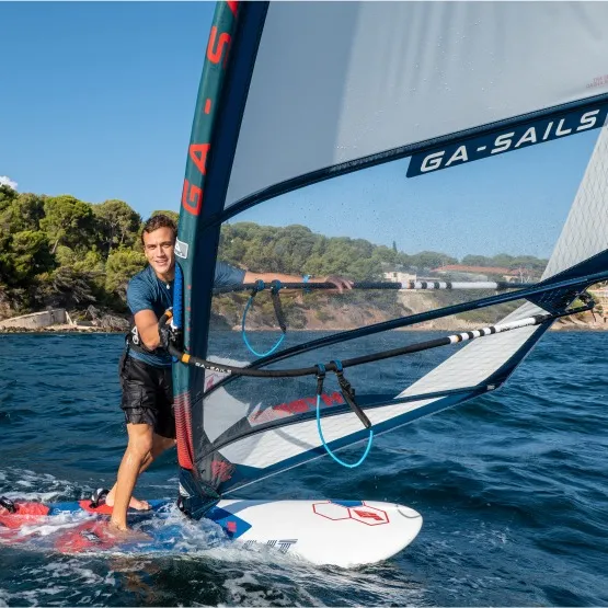 Przygotuj się na najlepsze wrażenia z windsurfingu dzięki Hybrid, linii żagli, która bez problemu dostosowuje się do twoich wymagań, niezależnie od tego, czy pływasz na falach, jesteś miłośnikiem bump&jump, czy pływasz na płaskiej wodzie.