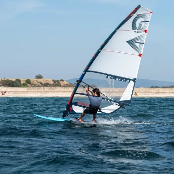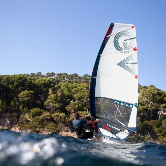 Cross – Średnie rozmiary (5.2 – 6.4) posiadają 5 listew. Są one wykonane na bazie modelu Cross, który zastępują w ofercie GA Sails. Świetnie sprawdzą się w warunkach Bump & Jump i wszędzie tam, gdzie przyda się niezła manewrowość połączona z przyzwoitymi osiągami prędkościowymi. Dość głęboki i stabilny profil, ustalany przez kombinację listew z włókna szklanego i listew rurkowych znanych z bardziej wyścigowych modeli, zapewnia solidny ciąg. Okno z X-ply zdecydowanie zwiększa wytrzymałość żagla.