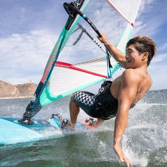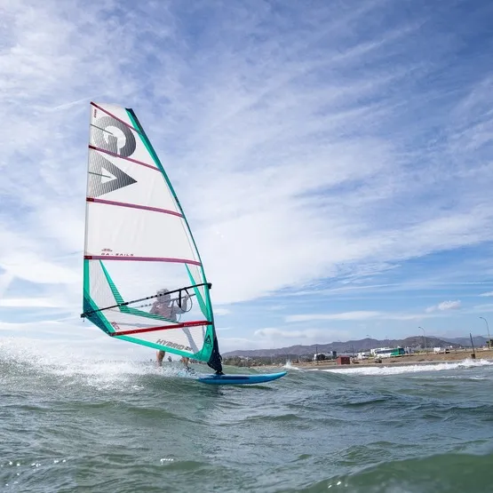 Przygotuj się na najlepsze wrażenia z windsurfingu dzięki Hybrid, linii żagli, która bez problemu dostosowuje się do twoich wymagań, niezależnie od tego, czy pływasz na falach, jesteś miłośnikiem bump&jump, czy pływasz na płaskiej wodzie.
