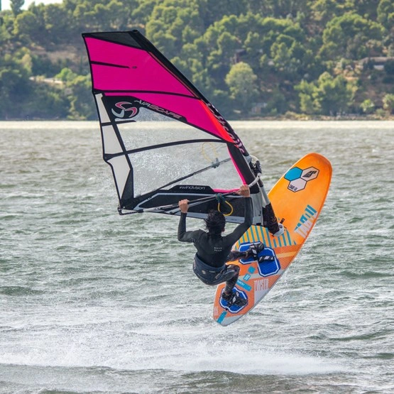Te same cechy, które czynią z Airscape’a doskonały żagiel freestyle sprawiają, że równie dobrze nadaje się do foilowego freeride’u. Wysokie aspect ratio równoważy niski opór, jaki foil stawia w wodzie.