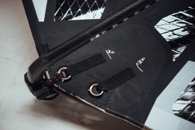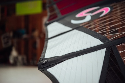 Dwa paski wychodzące z rogu szotowego na panele z X-ply stabilizują profil żagla