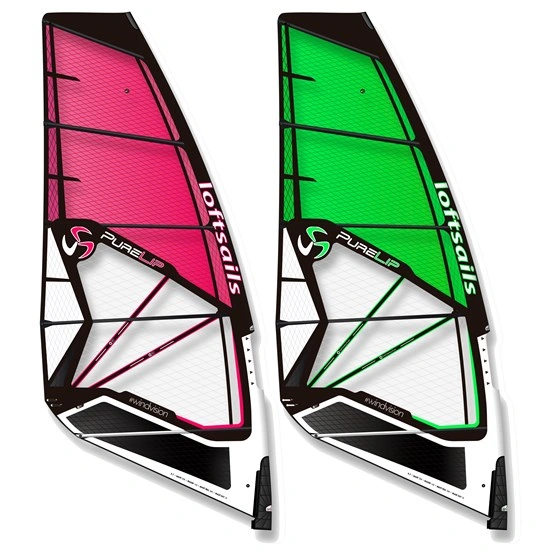 Loftsails Purelip 5-listwowy żagiel windsurfingowy wave (4 listwy w najmniejszych rozmiarach) cechujący się stabilnym profilem i doskonałym generowaniem mocy w szerokim zakresie warunków. Konstrukcja wykonana w X-Ply sprosta najbardziej wymagającym warunkom.