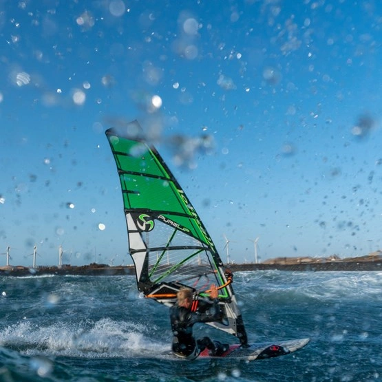 Purelip to czyste osiągi na fali: imponująca stabilność z ogromnym zakresem wiatrowym. Dzięki ponad 20-letniej ewolucji Purelip stale poprawia równowagę, stabilność i łatwość użytkowania. Purelip jest szybszy i bardziej kompaktowy dzięki wyższemu aspect ratio. Zwiększenie długości masztu jest kompensowane przez przejście na zamkniętą kieszeń w topie żagla, która zastępuje stosowany do tej pory korek topu. Przeznaczony do pływania na fali i w silnym wietrze, Purelip jest skonstruowany w pełni z X-ply, ma podwójne panele topu z dakronu oraz potrójne wzmocnienia krawędzi liku tylnego i dolnego. W warunkach wave zmiany mocy odczuwane na żaglu mogą być ogromne. Aby ustabilizować profil żagla i rozszerzyć zakres wiatru Purelipa podwójne taśmy przechodzą od rogu szotowego do korpusu żagla. Lik wolny ma zmieniony zarys i został wydłużony na trzeciej listwie, aby zapewnić płynne, bardziej reaktywne uwalnianie mocy podczas przejścia na fale.